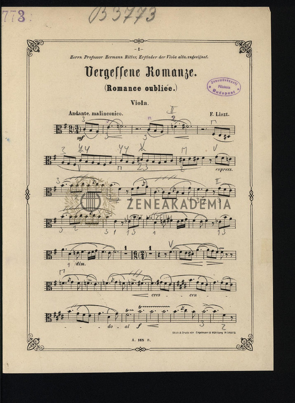 - Romance oubliée (Vergessene Romanze) pour Violon et Piano, [R. 467b, S. 132.]
