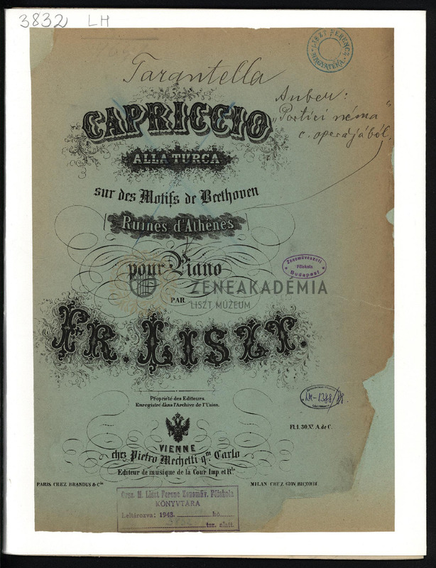 A kotta borítója téves: "Cappriccio alla turca sur des Motifs de Beethoven Ruines dAth?nes pour piano".