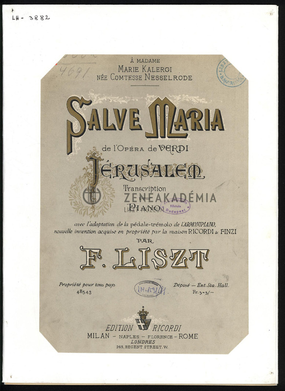 Salve Maria de lOpéra de Verdi "Jerusalem". Transcription pour piano. [R. 264, S. 431.]