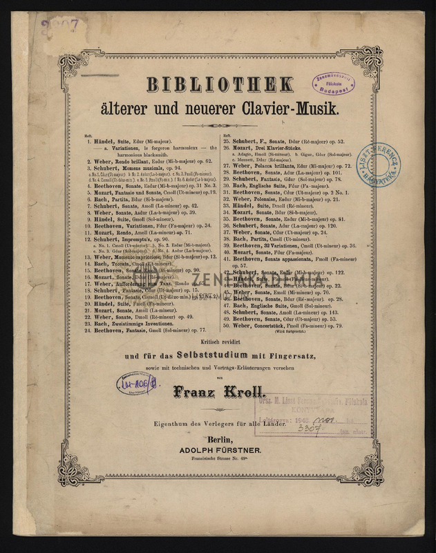 Fantasie und Sonate c moll (Ut-mineur), Op. 19. Kritisch revidirt und für das Selbstudium mit Fingersatz, sowie mit technischen und Vortrags-Erläuterungen versehen von Franz Kroll.
