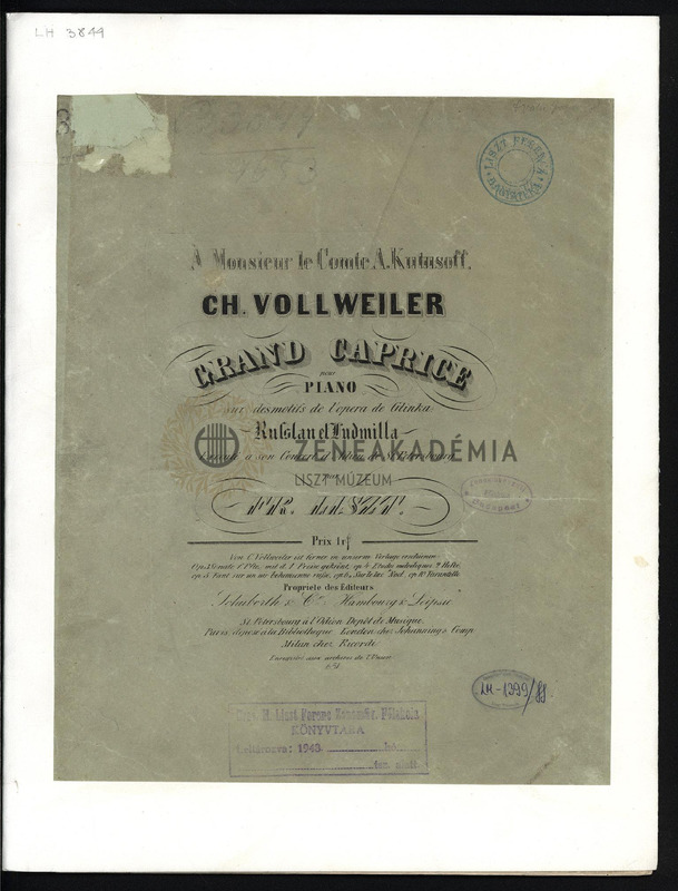 Grand Caprice pour piano sur des motifs de lopéra de Glinka "Ruslan et Ludmilla". Executé ? son concert dadieu de St. Petersbourg par Fr. Liszt.