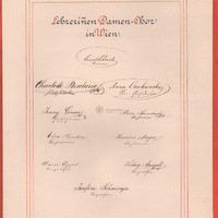 "Lehrerinnen Damen-Chor in Wien" (A Bécsi Tanárnők Női Kara) köszöntőlapja aláírásokkal.