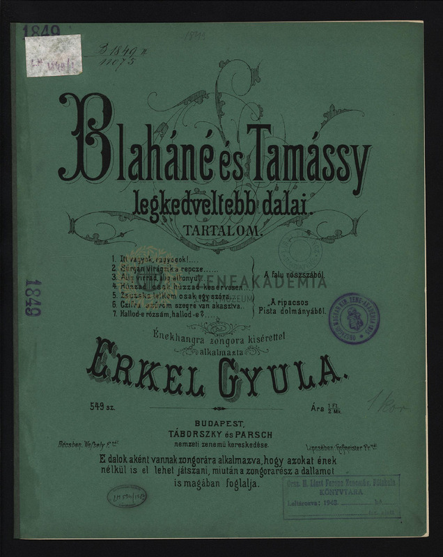Blaháné és Tamássy legkedveltebb dalai énekhangra zongora-kisérettel.
