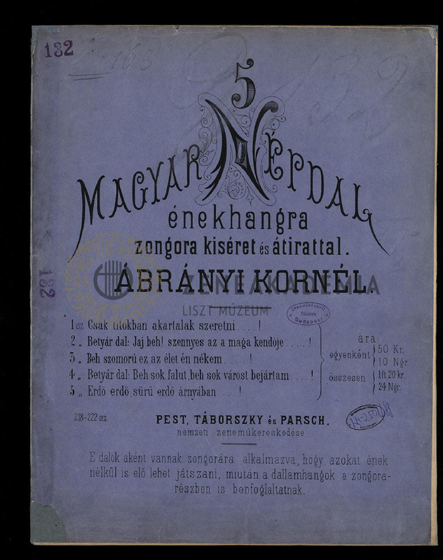 5 magyar népdal énekhangra zongorakiséret és átirattal.