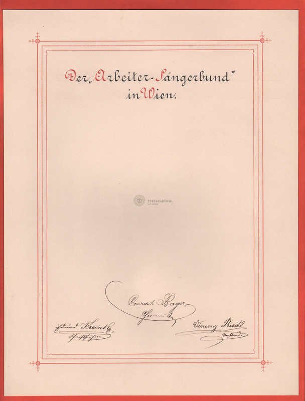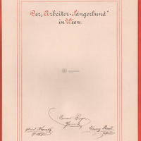 "Der "Arbeiter-Sängerbund" in Wien" (A Bécsi Munkások Dalköre) köszöntőlapja aláírásokkal.