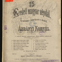 15 eredeti magyar népdal énekhangra. Zongorakiséret és átirattal. A "Kisfaludy-Társaság" megbízásából kiadott "Magyar népköltési gyüjteményből" vett szövegekre (kettő kivételével).
