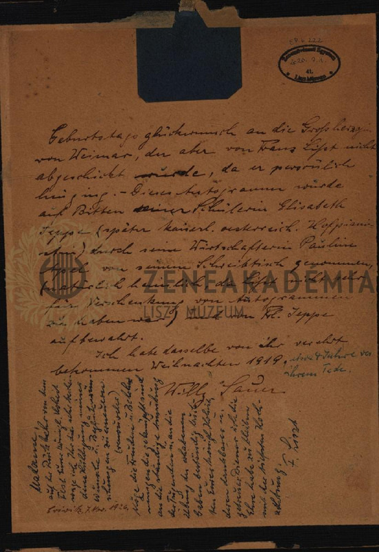 - Liszt Ferenc francia nyelvű, autográf levele Marie Hohenlohe-Schillingsfürstnek.