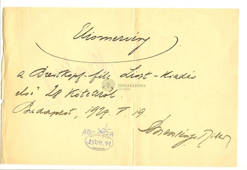 - A Franz Liszt Gesammelte Ausgabe köteteinek ajándékozásáról szóló értesítések, elismervények.