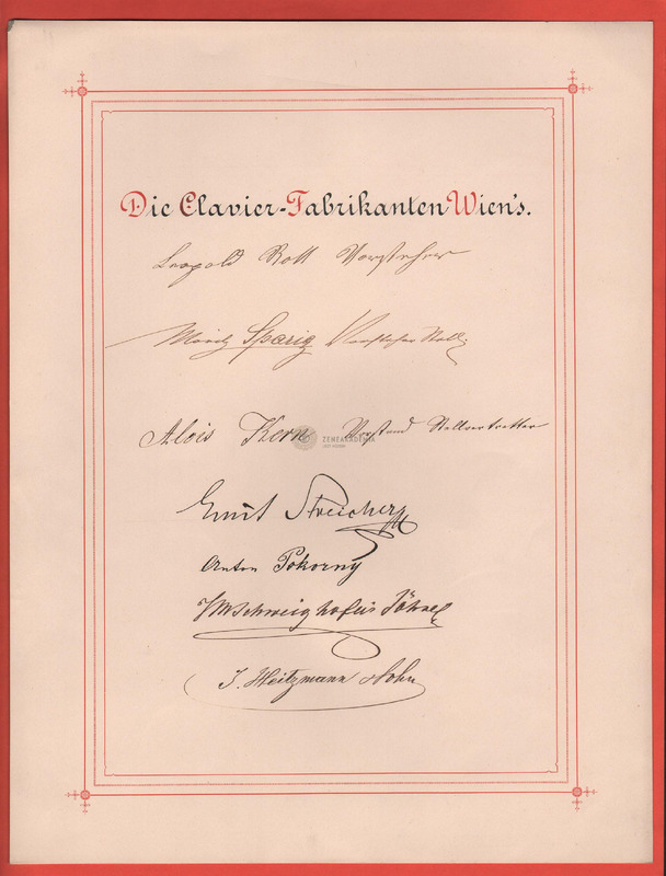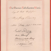 "Die Clavier-Fabrikanten Wiens" ( A Bécsi Zongorakészítők) köszöntőlapja aláírásokkal.
