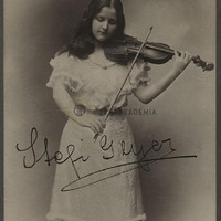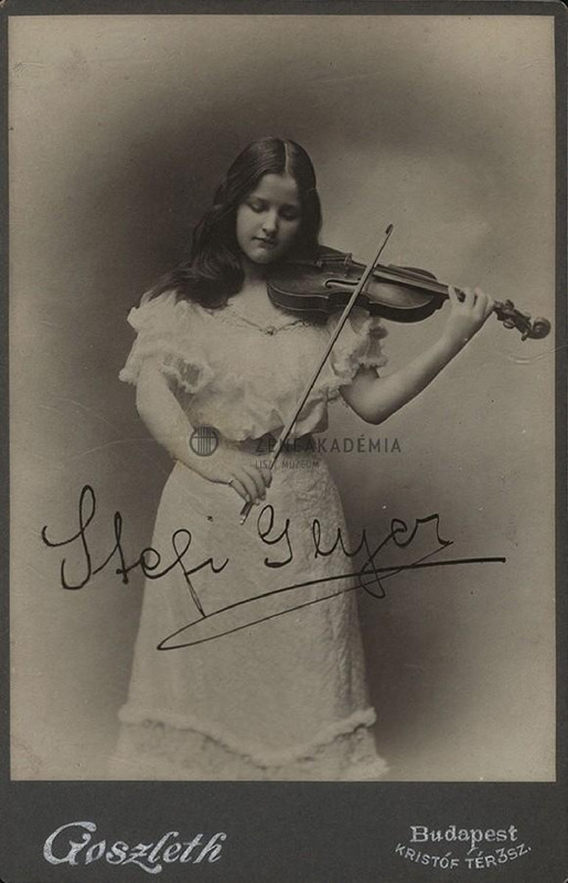 Goszleth István és fia (fényképészek), Budapest. Geyer Stefi portréja, kezében hegedűjével. A művész aláírásával.