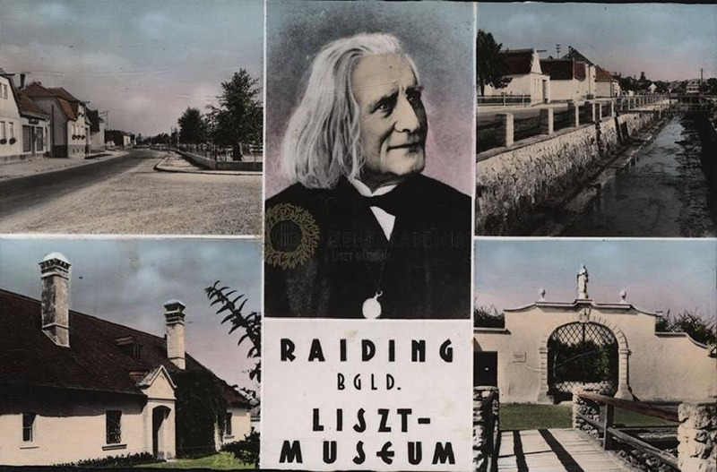 6 db fényképes képeslap a doborjáni Liszt Múzeumból. 1: Kriehuber, 1846-os Liszt portré. 2: négy fotóval díszítve (idős Liszt portré is). 3: a múzeum bejárata. 4: szülőház. 5: szülőház (duplum). 6: a szülőház gémeskúttal.