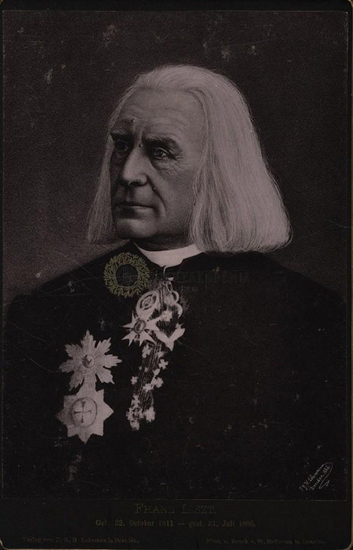 F. G. H. Lehmann készítette, 1886. Drezda. Liszt abbé ruhában, összes jelvényével jobbra fordulva. Felirat: "FRANZ LISZT Geb. 22. october 1811 - gest. 31. juli 1886".