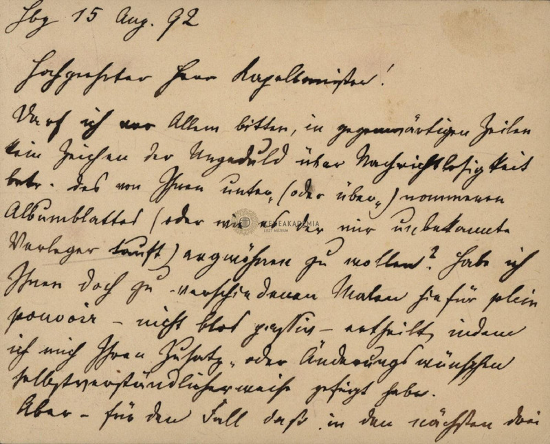 - Hans von Bülow autográf levele Hans Michael Schletternek címezve.