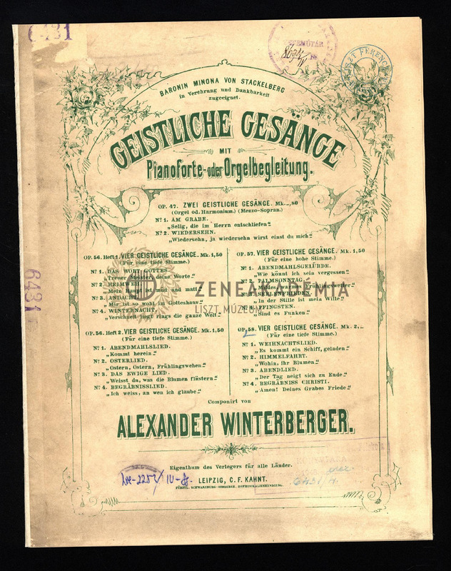 No. 1.: Weihnachtslied; No. 2.: Himmelfahrt; No. 3.: Abendlied; No. 4.: Begräbniss Christi. 2 példány, eltérő jelzetekkel; a 2. körülvágva.