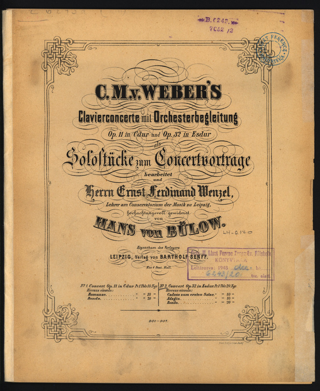 Clavierconcerte mit Orchesterbegleitung Op. 32 in Es dur als Solostücke zum Concertvortrage bearbeitet […] von Hans von Bülow.