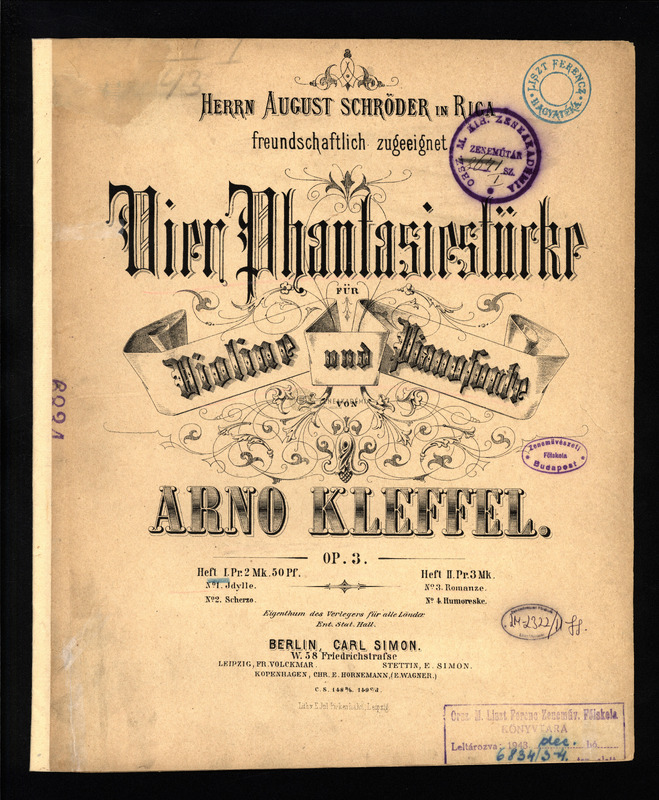 Vier Phantasiestücke für Violine und Pianoforte. Op. 3. Heft I-II.