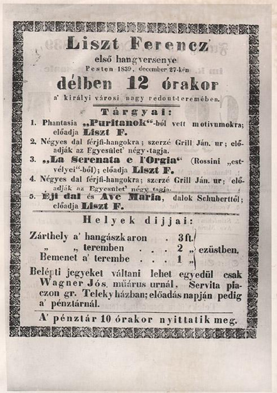 Liszt első hangversenye Pesten.