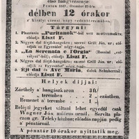 Műsor: Liszt: Puritánok-fantázia, Rossini: La Serenata e lOrgia, Grill János férfikvartettjei, Schubert: Éji dal, Ave Maria.