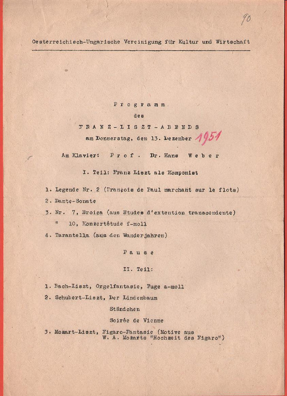 Műsor: Liszt: 2. Legenda (Paulai Szent Ferenc a hullámokon jár), Dante Szonáta, Transzcendens etűdök: No. 2. Eroica; No. 10. F-moll koncertetűd; Tarantella; Bach-Liszt: A-moll Orgonafantázia és Fúga; Schubert-Liszt: A hársfa, Szerenád, Soirée de Vienne; Mozart-Liszt: Figaro fantázia.