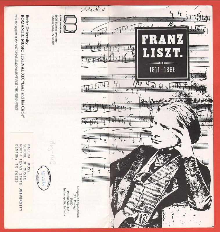 12 lapos prospektus, címoldalán Liszt mellkép, a háttér egy saját kézirata, felirat: FRANZ LISZT 1811-1886. Belül részletes program, néhány művész fotójával.