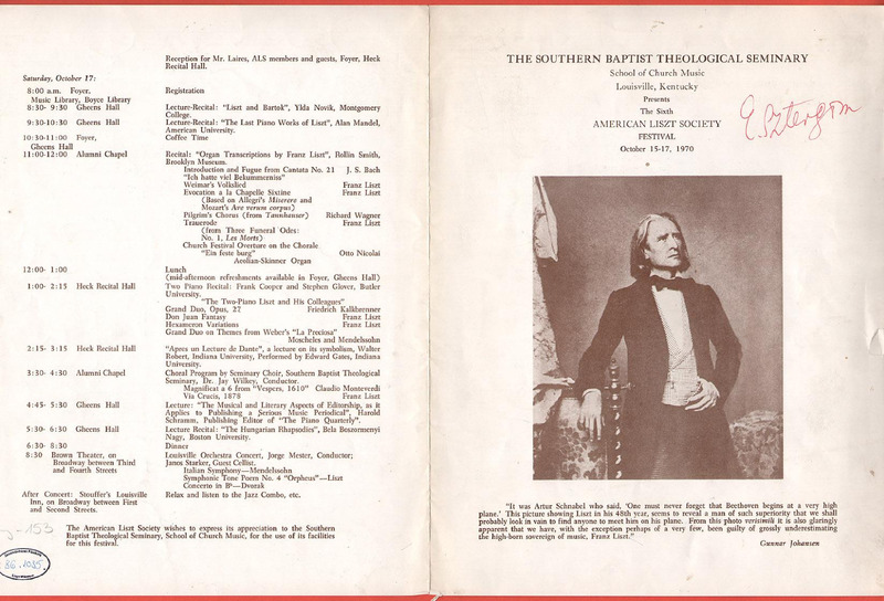 VI. Liszt-fesztivál az Amerikai Liszt Társaság és a déli babtista teológus szeminárium zenei kollégiumának rendezésében.