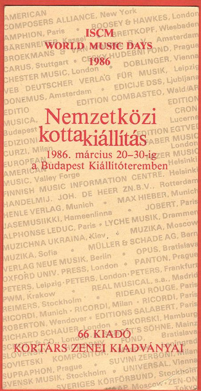 Az ISCM World Music Days szervezésében, 66 kiadó kortárs zenei kiadányai. Liszt Ferenc időskori fényképével. Az Editio Musica kiadványa.