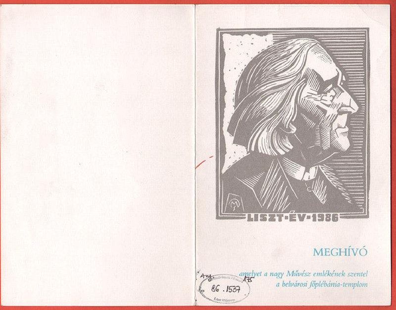 Meghívó a fővárosi főplébánia-templom Liszt emlékének szentelt zenei áhítatára.