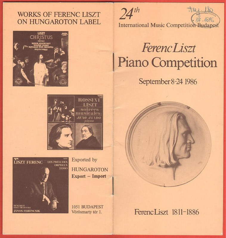 Az 1986-ban megrendezett 24. Budapesti Nemzetközi Zenei Verseny Liszt Ferenc zongoraversenyének felhívása magyar, angol, német, francia nyelven.