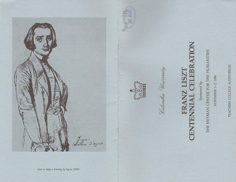 Liszt Centenáriumi Ünnepség programja a Columbia University szervezésében.