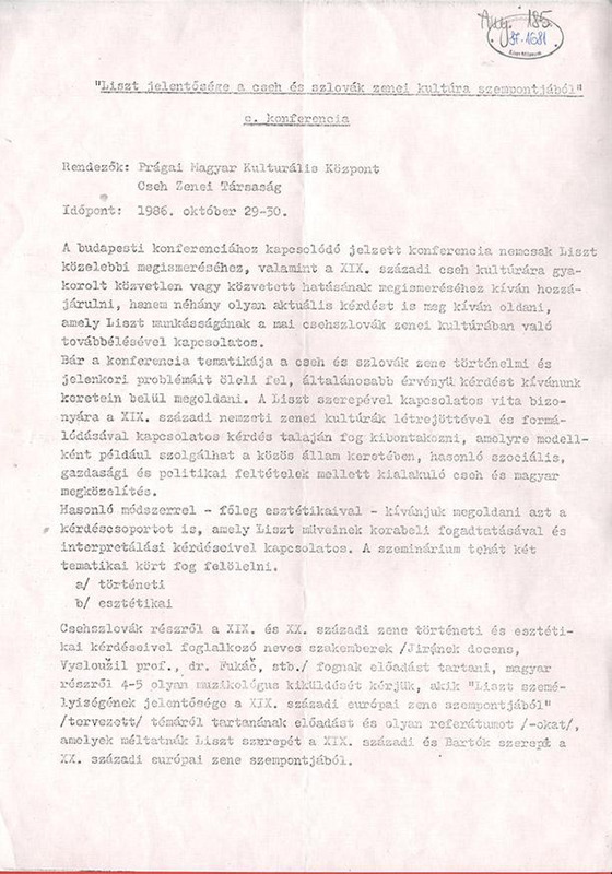 Meghívó a "Liszt jelentősége a cseh és szlovák zenei kultúra szempontjából" című konferenciára.