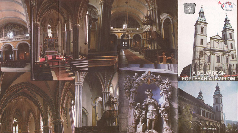 A Belvárosi Főplébánia Templom rövid története a templom részleteit bemutató színes fotókkal.