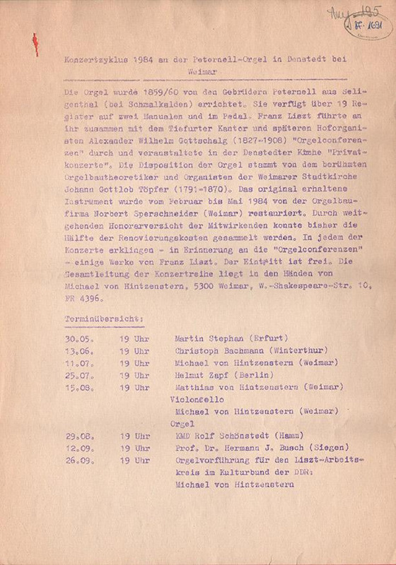 Weimari koncertsorozat terve 1984-ben Liszt Ferenc emlékére.