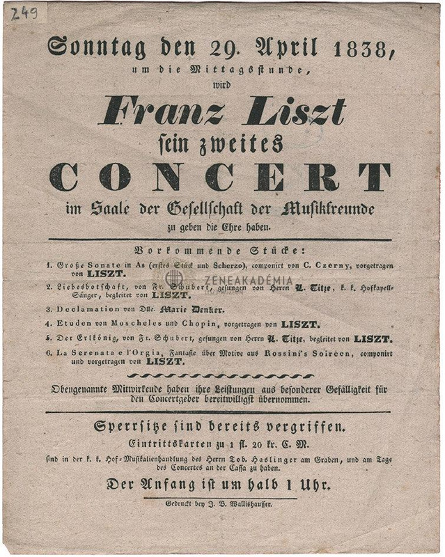 Műsor: Liszt: La serenata e lorgia, Czerny, Moscheles és Chopin művei, Schubert dalok km. R. Titze.
