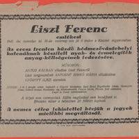 Műsor: Antos Kálmán előadása Liszt Ferencről. Liszt zeneműek Antosné Simkó Mária előadásában. Győrffy Ilike szavalata.