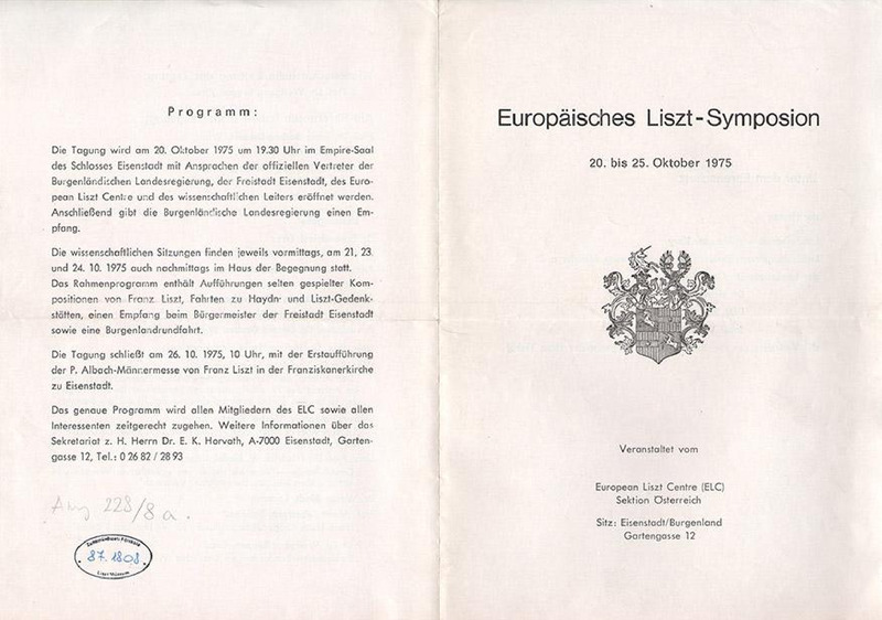 Európai Liszt-Symposion műsora, benne Bisztriczky Tibor és Sebestyén Albert koncertjének műsora.