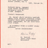 Melléklet: Stein Rózsi levele, üdvözlő sorai Eckhardt Mária részére.