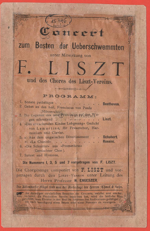 Liszt koncertje az árvízkárosultak javára, a Liszt egylet kórusának közreműködésével.