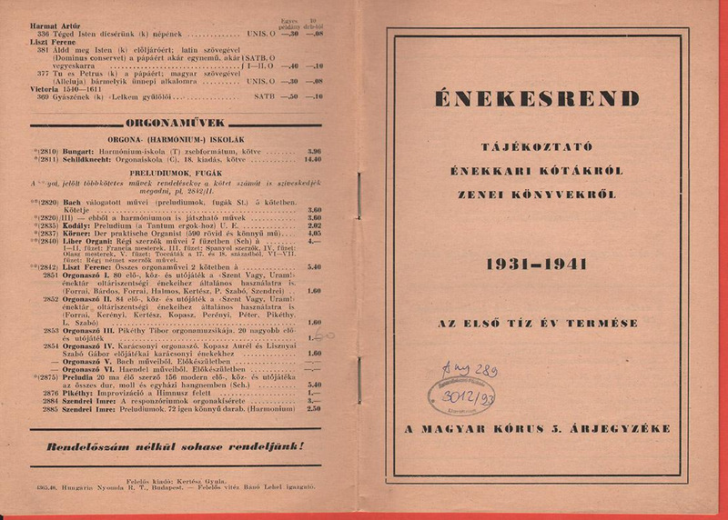 - Énekesrend. Tájékoztató énekkari kótákról zenei könyvekről (1931-1941).