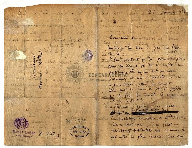 Hector Berlioz levele Liszt Ferenchez