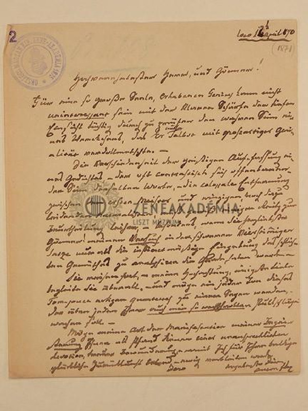 Fáy Antal levele Liszt Ferenchez