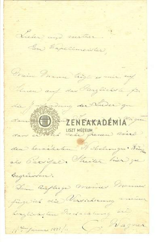 Cosima Wagner-Liszt levele ismeretlen karmesterhez