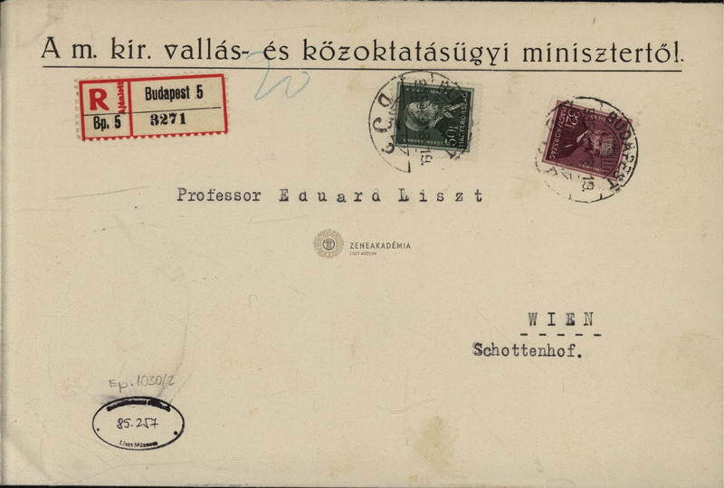Meghívás az 1935. 10. 21-én kezdődő Liszt-év megnyitó ünnepségeire.