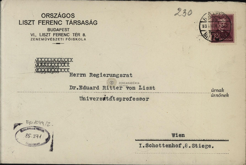 Egy Eduard von Lisztnek tulajdonított Pester Lloyd-beli cikk alapján Csekey készülő Liszt-életrajzához további adatokat kér a család történetéből.