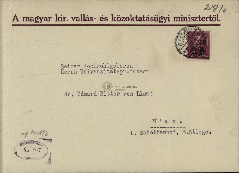 Hóman megköszöni a küldött emlékiratot, alkalomadtán felkeresi Eduard von Lisztet.