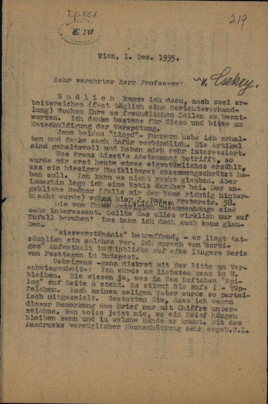 Ifj. Eduard von Liszt levele Csekey Istvánhoz