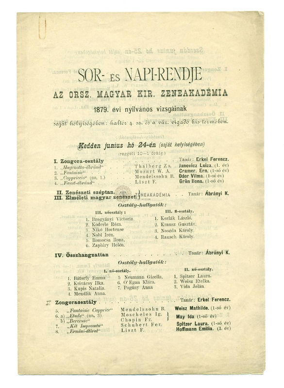 Zongora, zeneelmélet, zenesztétika, összhangzattan vizsgák rendje.