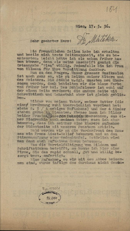 Ifj. Eduard von Liszt levele Mátéka Bélához