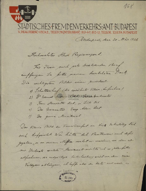 Mátéka Béla levele ifj. Eduard von Liszthez