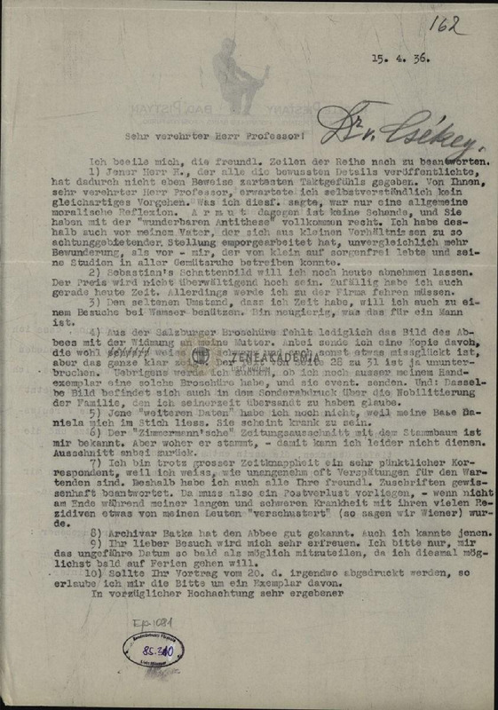 10 pontos válasz Csekey 1936.04.11-i levelére.