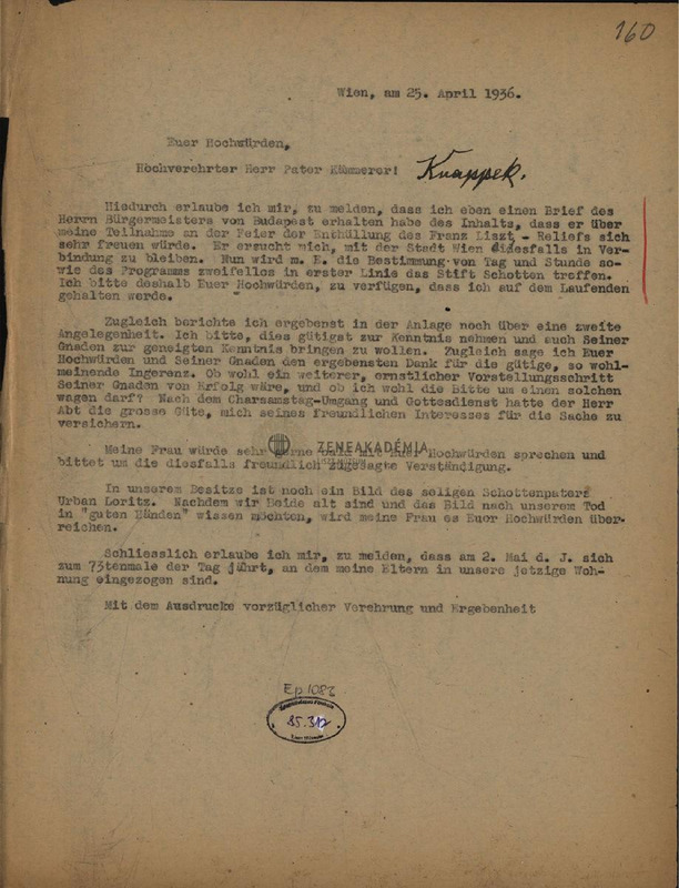 Ifj. Eduard von Liszt levele Knappek páterhez